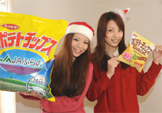 北海道のポテトチップス ほうれん草を切ってるよ〜