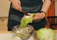 今回桜子は、小杉食品さんの大粒納豆「日本の大粒」を使っての、おからレタス納豆に挑戦です。使う材料は「おから」と「レタス」。シンプルかつ、とってもヘルシー! 小杉食品さんの「日本の大粒」は、全国納豆鑑評会で受賞しているだけあって、大豆の旨みがしっかりと感じられる完成度の高い納豆です。おからレタス納豆は、「日本の大粒」の本来の美味しさや豆の噛みごたえも十分感じられるいいメニューですよ。レタスのシャキシャキッ感と、おからのしっとりとした食感のコントラストも期待大ですね☆