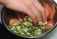 ・オクラは一口切りに切手、塩もみして水で洗う。