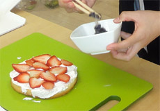 (2)スライスしたイチゴと黒豆納豆を乗せる。